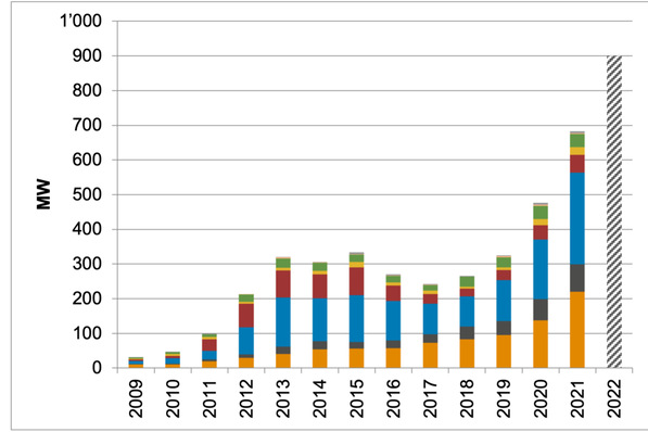 Compared to the previous year, new photovoltaic installations in Switzerland have grown by 43 per cent to a record 683 megawatts. High electricity prices, booming EV sales and the need for a crisis-proof energy supply are driving demand.